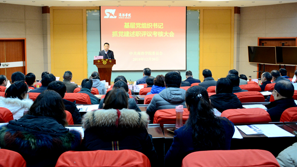 12月20日,校党委召开基层党组织书记抓党建述职评议考核大会,校领导龙治刚、范新会、王思怀、魏书堂、彭虎军、刘宝盈、刘勇出席会议,校党委委员、党群部门负责人、各党总支书记、各党支部书记、各二级学院行政负责人、市级及以上“两代表一委员”及部分党员代表参加了会议。会议由彭虎军主持。