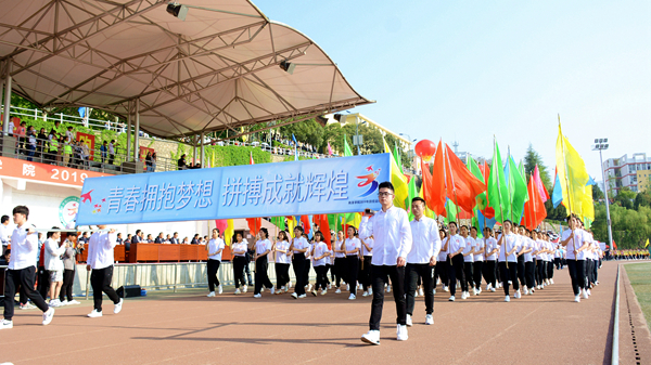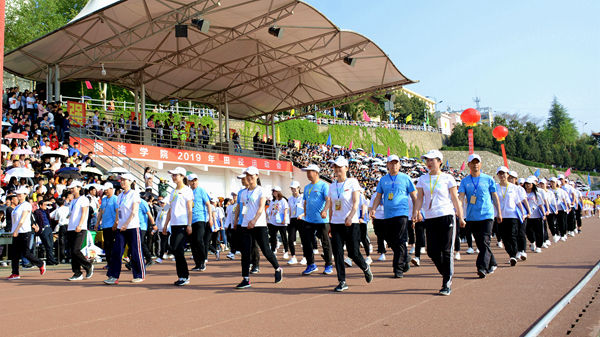 4月18日上午,风晴日朗、天高云淡,体育场上彩旗招展、热闹非凡,英国365上市公司2019年田径运动会正式开幕。党委书记龙治刚、校长范新会、纪委书记王思怀、副校长魏书堂、党委副书记彭虎军、副校长刘宝盈,各二级教学单位党政负责人和各职能部门负责人出席开幕式,与全校师生共同观看了开幕式文体表演。