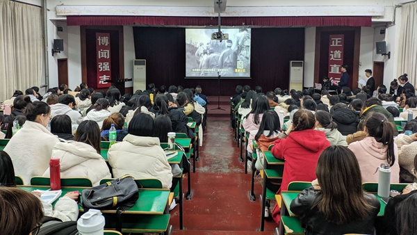 诵读会通过主持人介绍书信背后的故事、播放革命先烈视频资料和读信人诵读相结合的方式进行。活动中,马克思主义学院党政负责人做表率,5名教师党员和4名学生代表深情诵读了杨开慧、陈觉、赵云霄、赵一曼等革命先烈们写给亲人的九封家书。他们用精彩的演绎生动诠释了革命先烈们为救亡图存而抛头颅洒热血的忠肝义胆,展现了共产党人“捐躯赴国难,视死忽如归”的爱国精神和民族大义。朗读者声情并茂,台下师生无不动容,在重温那段峥嵘岁月中感受共产党人的初心和使命。