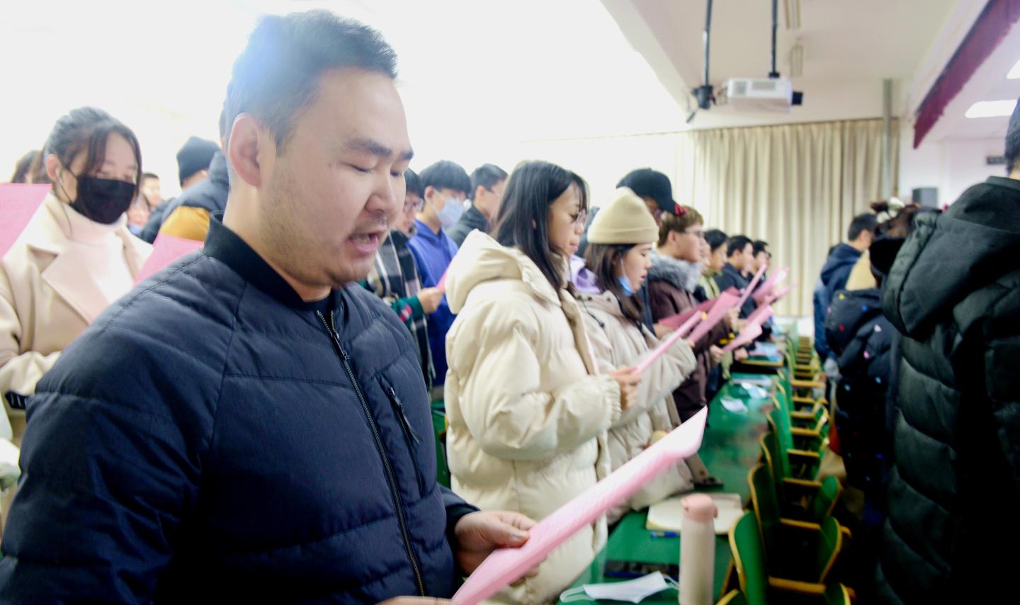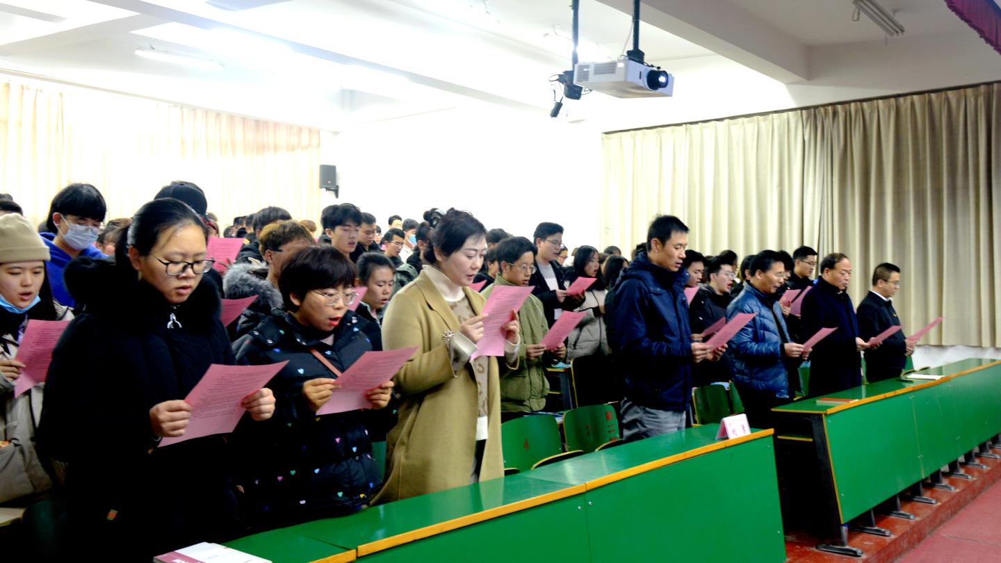 ——组织参加国家宪法日“宪法晨读”活动。12月4日上午,校党委副书记刘勇,宣传部、学工部、团委负责人,和马克思主义学院法学专业教师、二级学院师生代表190人,在1号楼报告厅二共同收看、参与了教育部普法网平台直播的“宪法晨读”活动。上午9:00,全体起立,跟随直播现场行注目礼、唱国歌、跟读宪法条款内容,与北京主会场同唱《宪法伴我们成长》歌曲,观看了优秀学生代表的现场展演。大家表示,通过参加晨读活动,进一步强化了宪法意识,增强了爱国主义情感,我们要带头学习、宣传宪法内容,让宪法精神在校园扎根。
