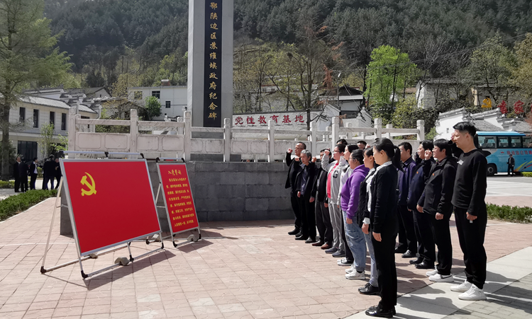 在鄂陕边苏维埃政府旧址,全体党员认真聆听讲解员为大家讲述的山阳县袁家沟口苏维埃政府、鄂陕边区苏维埃政府、鄂陕第四路游击师成立的历史及红二十五军的革命历史,参观了当年苏维埃政府工作人员会议室、办公室等革命遗址,重温了革命先烈在血雨腥风中,为民族解放进行的艰苦卓绝的斗争历程,深切感怀革命先辈用鲜血和生命铸就的革命精神。在鄂陕边区苏维埃政府纪念碑前,全体党员面对鲜红的党旗,高举右手庄严宣誓,重温入党誓词。在烈士陵园,全体党员在烈士墓前驻足三鞠躬并敬献花篮,深切缅怀英烈们的丰功伟绩。