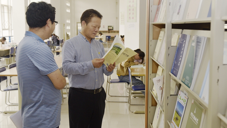 张志昌在图书馆调研