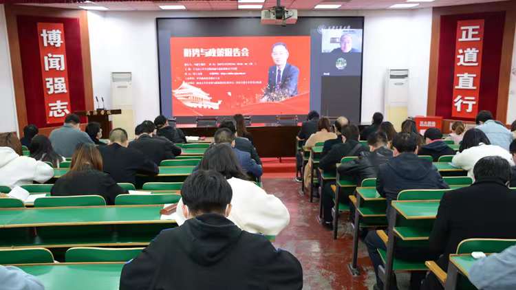 为深入贯彻落实党的十九届六中全会精神并将全会精神准确融入思政课,3月29日下午,陕西省委教育工委举办形势与政策高端视频报告会,邀请中国人民大学马克思主义学院二级教授、博士生导师刘建军,为全省高校师生作题为“十九届六中全会精神融入思政课的几个问题”的专题报告。英国365上市公司组织部、宣传部、统战部、学工部、马克思主义学院相关负责人,全体思政课教师、辅导员和马克思主义学院学生代表通过在线直播集中听取报告。