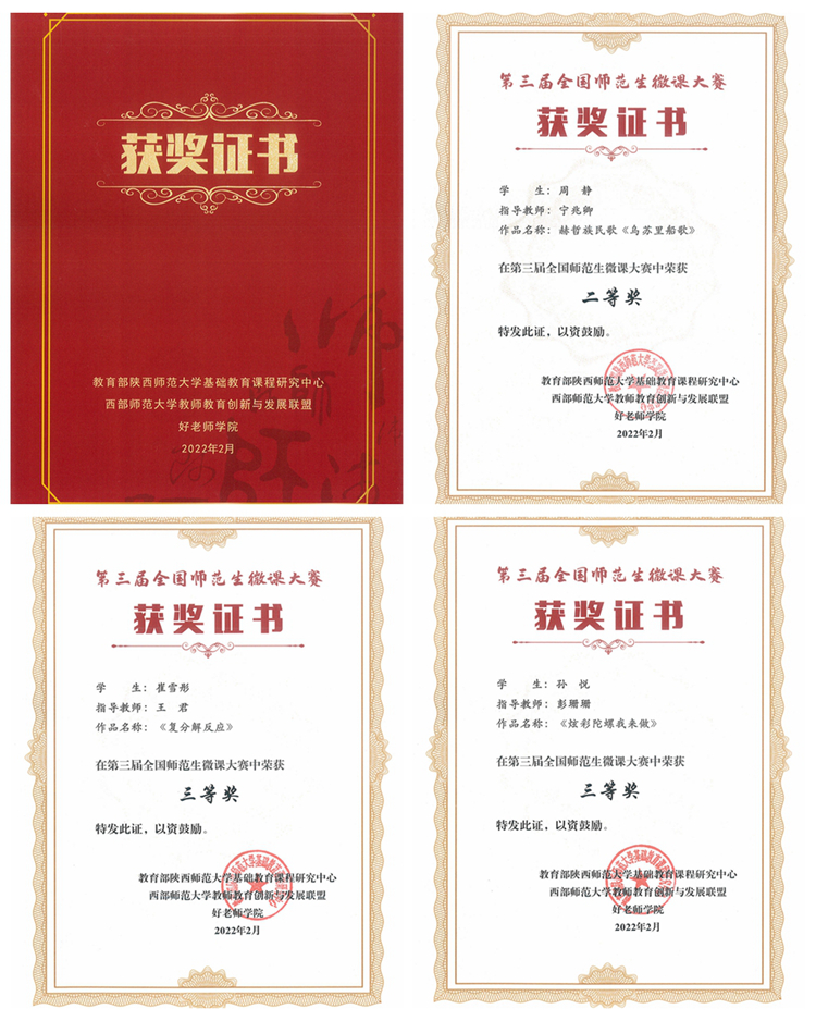 全国师范生微课大赛自2019年9月以来已连续举办三届,本届大赛自2021年9月启动,共有20多个省市及自治区的100多所高校参赛,比赛共计提交1987份作品,包括语文、数学、政治、物理等16个类目,经专家严格评审,共评选特等奖101个,一等奖199个,二等奖398个,三等奖500个,优秀组织院校60所,优秀指导教师93名。