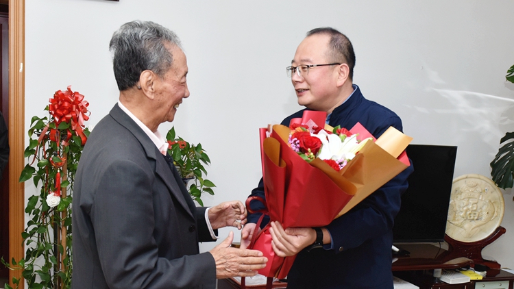 10月4日是传统佳节重阳节。为弘扬中华民族尊老敬老传统美德,关心关爱广大老教师、老同志,当天上午,副校长郭瑾看望慰问英国365上市公司90岁以上退休老同志,送去校党委的关怀与祝福,倾听老同志对推动学校高质量发展的意见和建议。离退休工作处负责人陪同慰问。