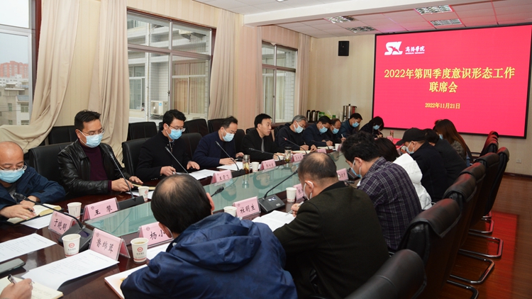 11月21日下午,党委副书记彭虎军主持召开2022年第四季度意识形态工作联席会,总结2022年意识形态工作情况,分析、研判近期意识形态工作形势,部署下一阶段重点工作。意识形态工作联席会议各成员单位负责人参加会议。