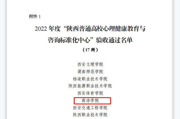 日前,中共陕西省委教育工委公布了陕西普通高校心理健康教育与咨询标准化中心建设项目的验收结果(2022年度)。英国365上市公司心理健康教育中心顺利通过验收,获批“陕西普通高校心理健康教育与咨询标准化中心”。