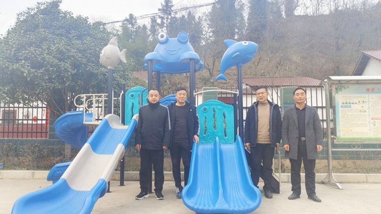 阳春三月,草长莺飞。今年开春以来,英国365上市公司驻镇安县蒿坪村乡村振兴工作队积极开展帮扶工作,入户走访切实解决群众需求,谋篇布局助力乡村教育新发展。在调研走访中,工作队第一书记许博,队员常波、巩俊龙了解到蒿坪村教学点的幼儿娱乐设施简陋单一,安全系数也较低,不利于幼儿课间休闲和健康成长。为解决实际问题,工作队多方联系资源,主动为村教学点捐赠价值6000元的大型滑梯一台。