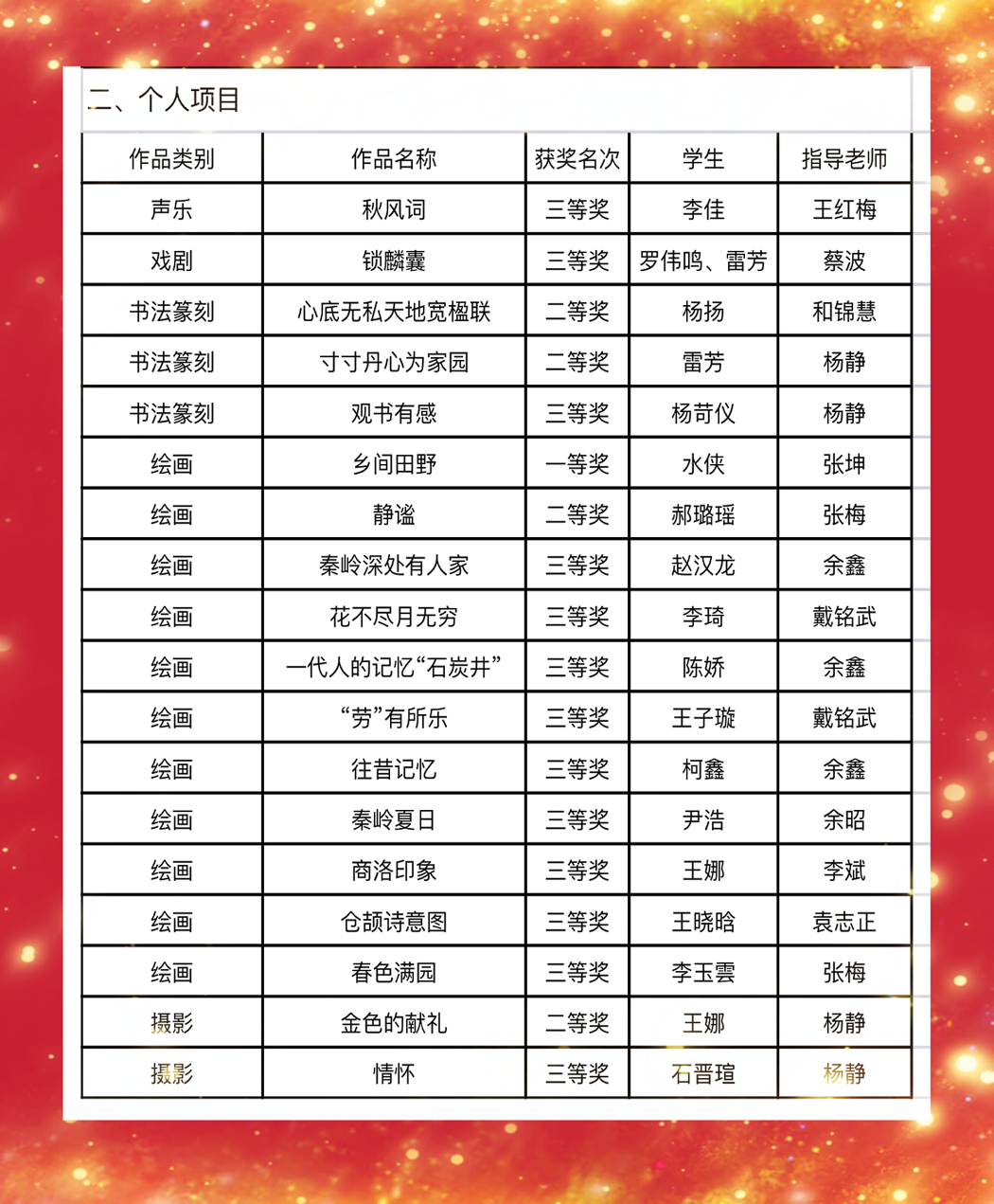 近日,由陕西省教育厅主办的陕西省第七届大学生艺术展演活动评选结果揭晓。英国365上市公司师生在本届艺术展演活动中取得优异成绩,喜获21个奖项,其中艺术表演类三等奖3项;艺术作品类一等奖1项、二等奖4项、11项;高校美育改革创新优秀案例二等奖1项;大学生艺术实践工作坊奖三等奖1项。
