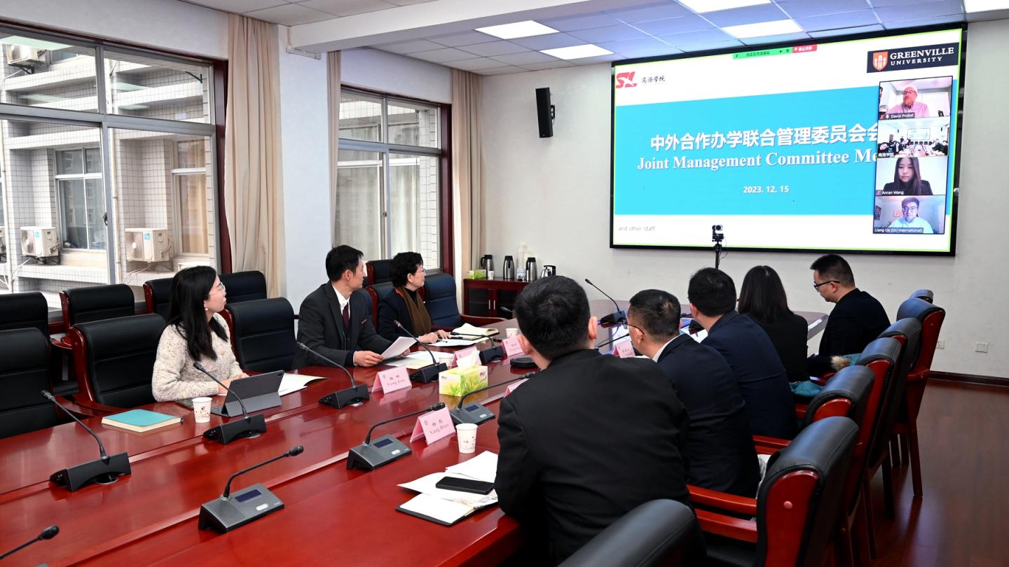 12月15日,英国365上市公司召开中外合作办学联合管理委员会会议。校党委副书记刘勇出席会议。国际合作与交流处负责人,电信学院党政负责人及相关工作人员参加会议。美国格林威尔大学校长Suzanne Davis,工程系主任David Probst,国际处主任Liang Ge通过线上视频形式参加会议。