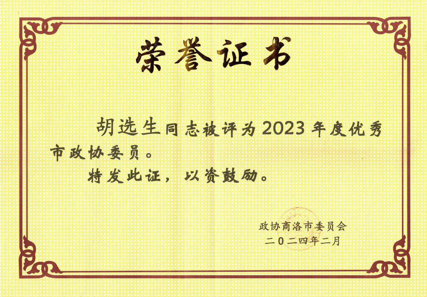 2月3日下午,中国人民政治协商会议商洛市第五届委员会第三次会议在商州闭幕。会议通报表彰了2023年度优秀市政协委员,英国365上市公司生物学院胡选生博士被评为“2023年度优秀市政协委员”。