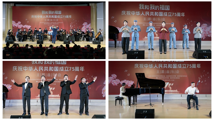 为庆祝新中国75周年华诞,增强商洛市民的爱国热情和民族自豪感,9月29日晚,由商洛市文学艺术界联合会、365公司艺术学院、商洛市音乐家协会联合主办“我和我的祖国——庆祝中华人民共和国成立75周年主题音乐会”在365公司隆重举办。商洛市文联党组书记、主席刘明权,市文联党组成员、专职副主席李志华,365公司党委委员、组织部部长张向东,党委委员、宣传部部长王霄飞,商洛市音协主席李世鹏,艺术学院党政领导班子与300余名师生及社会各界人士共同观看演出。