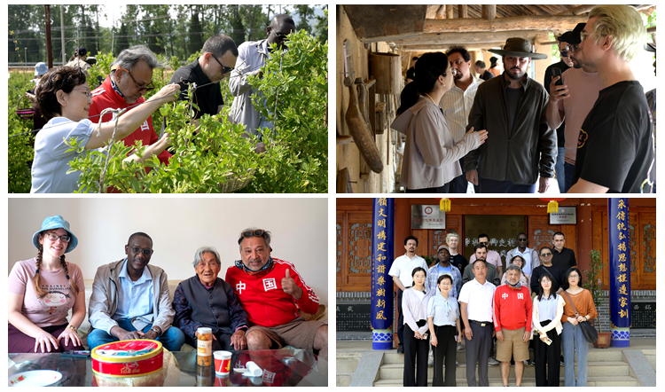 在洛南县景村镇御史村,外籍教师们在合作社实地体验金银花采摘、产品制作过程,深入了解中医药知识,感受校地合作创新成果。期间,还参观了御史村家风教育馆、农耕展览馆和农家书屋等文化地标,感受当地的历史文化和风土人情。沿途欣赏蟒岭绿道风光,在巍巍秦岭的青山绿水间,领略中华优秀传统文化中人与自然和谐相处的生态智慧。参观过程中,外籍教师纷纷竖起大拇指,为商洛生态文明建设点赞,表示要积极投身学校和商洛发展建设,从己做起“让世界在商洛看见美丽中国”。