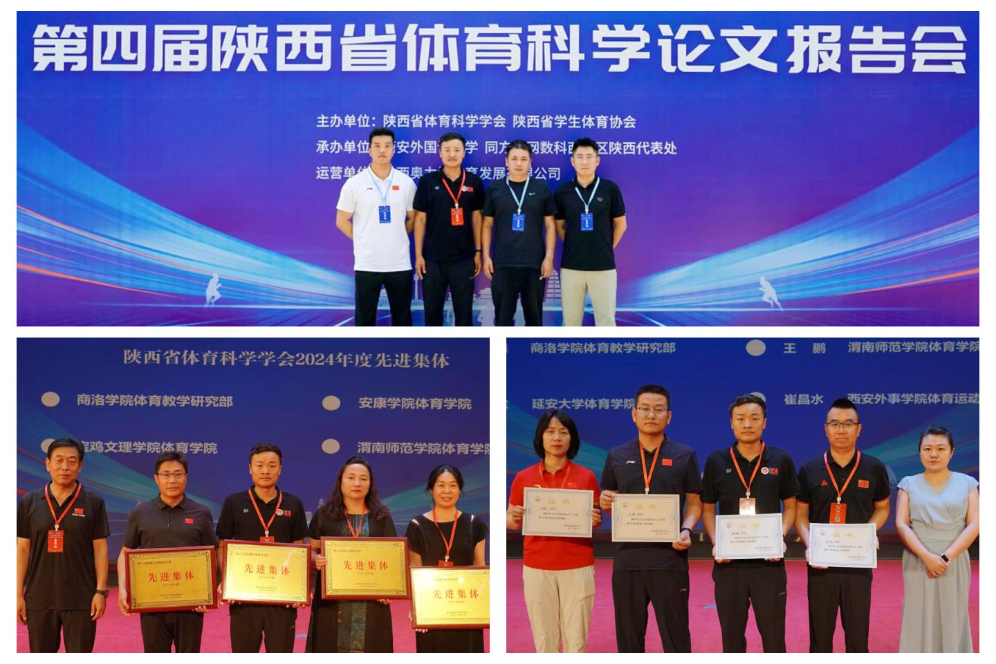 英国365上市公司教师的投稿论文在本次大会上获一等奖2项、二等奖1项、三等奖1项。陕西省体育科学学会依托本次报告会为相关高校及个人颁发了2024年度各项荣誉证书,英国365上市公司体育教学研究部获评2024年度先进集体,体育教师祝河德获评2024年度先进个人。