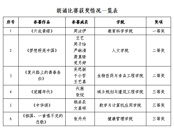 活动中开展了新生朗诵比赛,来自各学院的2025级新生以饱满的热情、真挚的情感朗诵了经典作品,赢得了现场观众的热烈掌声。经过激烈角逐,教育科学学院选手获一等奖,人文学院、生物学院选手获二等奖,建工学院、数计学院、健康学院选手获三等奖。