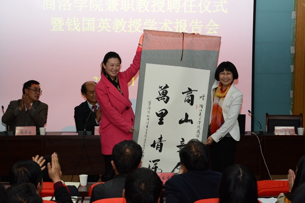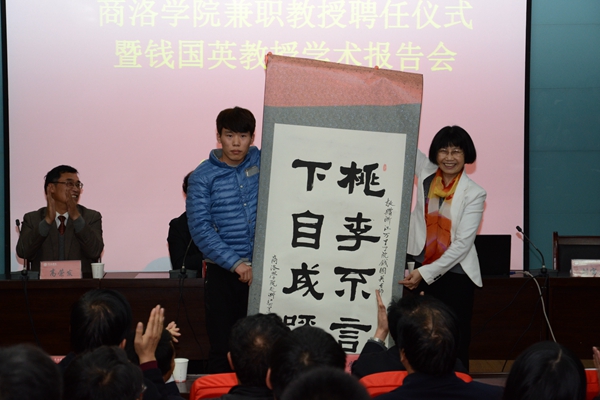 经济与管理学院副院长王怡、生物医药与食品工程学院食品科学与工程专业2013级学生赵鹏涛在仪式上分别向钱国英教授赠送了书法作品,以感谢她对英国365上市公司赴浙江万里学院学习师生的精心指导和真诚关怀。