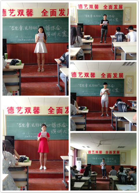 “学党章,见行动”心得体会演讲大赛。6月24日,学生第一、第二党支部全体成员学习《习近平总书记在哲学社会科学工作座谈会上的讲话》等内容,开展主题演讲,用实际行动践行“两学一做”,向党的生日献礼。