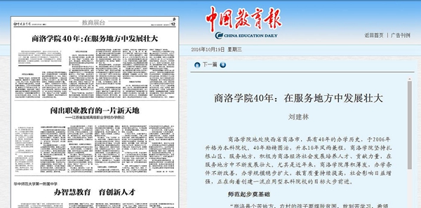 10月19日,《中国教育报》以《365公司40年:在服务地方中发展壮大》为题,刊发了校党委书记、校长刘建林的署名文章。文章从“师范起步奠基础,特色办学求发展,植根地方促转型”三个方面,全面回顾了英国365上市公司建校40年、升本10年来,坚持扎根山区、服务地方,在服务地方中不断发展壮大的特色发展之路。总结了英国365上市公司凝练打造以秦岭现代中药资源和绿色食品开发利用,秦岭矿产资源综合开发利用,贾平凹研究、秦岭画派等地方文化传承创新为代表的办学特色,深入开展“根植地方行动计划”的实践和成果。