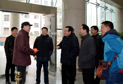在党政办公室、保卫处、后勤保障处负责人的陪同下,魏书堂、彭虎军一行先后前往北新街校区、丹江校区各处门卫、教学楼、公寓、图书馆、体育场值班室,后勤保障处公寓服务中心、水电班,保卫处警务室、监控室等一线岗位,与工作人员亲切握手,代表学校党政向大家拜年,对除夕之日仍坚守在工作岗位上的同志表示感谢,并亲手送上节日慰问品。在每一个慰问地点,校领导都详细询问了各部门的工作情况,对值班人员嘘寒问暖,叮嘱他们要安排好工作与家庭事务,并要求每位工作人员在值班期间一定要把安全稳定放在首位,保证全校师生度过一个温暖、祥和的春节。