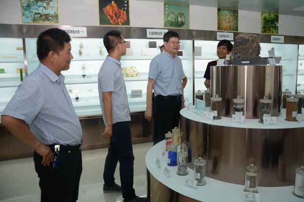 史高领一行深入重点实验室沙盘标本陈列室、有价元素提取室、材料制备室、材料性能检测室、尾矿无害化处理室等处,详细考察了实验室硬件设施建设、配备情况和项目研究工作开展进度。英国365上市公司化材学院院长、尾矿资源综合利用重点实验室主任周春生做了详细讲解。