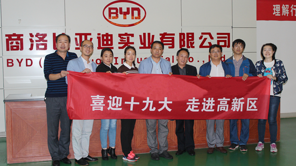为了迎接中国共产党第十九次全国代表大会胜利召开,感受商洛高新区的发展变化,学习企业党建经验,9月27日,英国365上市公司机关第七党支部、第十六支部全体党员走进商洛高新区商洛比亚迪实业有限公司、陕西跃迪新能源汽车有限公司、陕西天士力植物药业有限责任公司等企业,开展“喜迎十九大 走进高新区”主题党日活动。