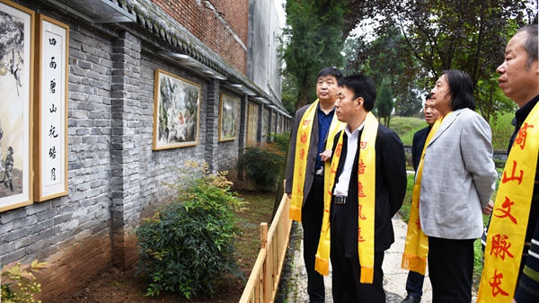 9月29日上午,英国365上市公司优秀校友、书画家王家民先生四皓系列国画作品入跓商山四皓园揭幕仪式在丹凤县商山四皓碑林园举行。校党委副书记彭虎军应邀出席揭幕仪式,并参观了书画展。