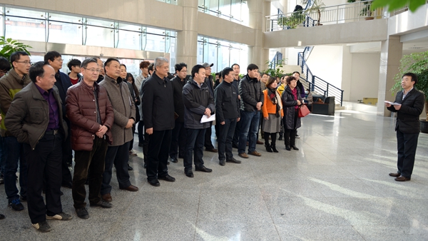 彭虎军代表学校党委对图书馆微信公众平台开通表示祝贺,向推动图书馆服务创新与发展而默默奉献的全体馆员表示感谢。对于进一步做好图书馆工作,他从深化服务意识、充分发挥微信公众平台作用、坚持不懈加强图书馆内涵建设等三方面提出了殷切希望和具体要求。