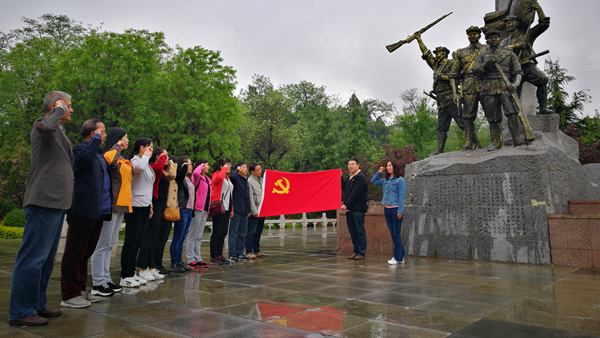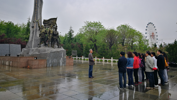 为了深入贯彻学习党的十九大精神,进一步强化党员的党性观念和宗旨意识,4月11日上午,图书馆直属党支部在商洛市金凤山红军广场开展了“缅怀先烈,不忘初心,牢记使命,砥砺前行”主题党日活动,直属党支部全体党员参加了本次活动。