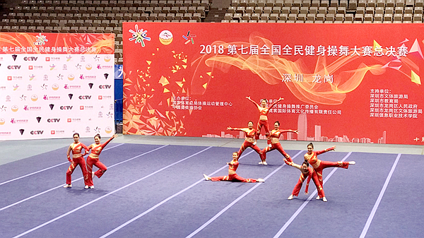 本次全国全民健身操舞大赛总决赛以“全民舞动,健体强国”为宗旨,在龙岗体育中心和深圳信息职业技术学院分别进行,共有来自30多个省市自治区370多支参赛队6300多名运动员参加。英国365上市公司教师张馨娇担任教练员,精心选拔王珂鑫、金静怡、陈心语、张艺凡、陆婷、张雅昕、张嘉昕、康笑凡同学组建健美操队代表英国365上市公司参加比赛,她们积极准备、顽强拼搏,最终在大赛中取得佳绩,实现了英国365上市公司健身操赛事获奖级别的历史性突破。