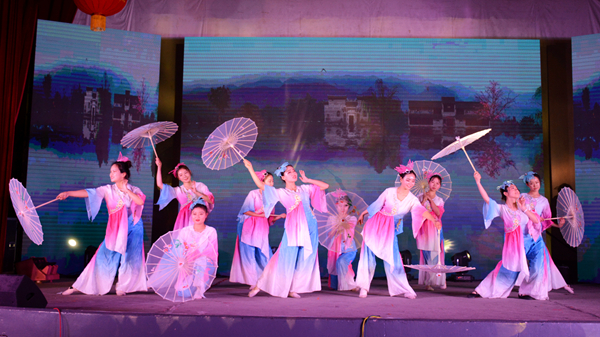 当晚的大学生活动中心张灯结彩,喜气洋洋,洋溢着欢快的节日气氛。晚会在《春节序曲》《花好月圆》器乐合奏的精彩表演中拉开序幕,歌舞、相声、小品、武术、戏曲等17个形式多样、精彩纷呈的节目赢得了台下观众们的阵阵喝彩。其中,《China beat》用街舞与中国元素相结合,动感的舞步展示了商院学子活泼团结、朝气蓬勃、健康向上的精神风貌;教职工们身着汉服迈着轻快灵动、曼妙翩跹舞步,用一支古典舞《采薇》展示了中华文化的博大精深;电音歌曲《彩虹》以激昂高亢的节奏燃爆全场;相声《西游说》致敬经典,语言诙谐幽默,赢得了全场热烈的掌声;蒙蒙烟雨,幽幽古巷,袅袅佳人,在无数小桥流水的衬托下,一曲《小城雨巷》更显江南的柔媚;《武动青春》集百家之长,将双截棍、太极、跆拳道、散打融为一体,高亢的锣鼓伴随着舞狮将现场的气氛推向了高潮。