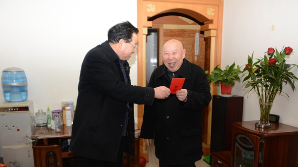 1月26日,副校长魏书堂在院长办公室、离退休工作处负责人的陪同下,登门看望了退休校领导刘文斌,介绍了学校一年来的发展变化,代表学校感谢老领导长期以来对学校工作的关心和支持,详细询问了他的生活以及身体健康情况,并祝愿老领导新年快乐,阖家幸福,希望他保重身体,安享幸福生活。之后,魏书堂一行走访慰问了牛树林、郭贞贤、田希民、李英杰等10位离退休老同志。每到一户,魏书堂都详细询问老同志的身体状况和生活情况,嘱咐他们保重身体,衷心感谢老同志们为学校改革与发展所作的无私奉献,同时祝愿大家身体健康、家庭幸福,希望老同志们继续关心学校的发展建设,多提宝贵意见。老同志们对学校给予他们的关心和问候表示感谢,他们纷纷表示,将不负学校的嘱托,一如既往地关注和支持学校发展。