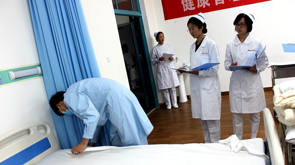 近日,英国365上市公司举办第二届护理技能操作大赛,大赛特邀商洛市中心医院专业医师和护士长担任评委。教务处负责人及健康管理学院相关教师观摩了比赛。