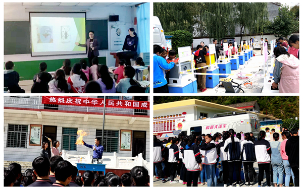 为扎实践行2019年全国科普日“礼赞共和国、智慧新生活”活动主题,进一步推进“双百工程”结对帮扶丹凤县工作,英国365上市公司师生继9月11日在蔡川镇九年制学校成功开展科普公益活动后,9月26日,又将“科普大篷车”开进丹凤县红色革命热土——庾岭镇,为庾岭中学300余名师生带去了一场精彩的“乡村流动科技馆”校园展演。