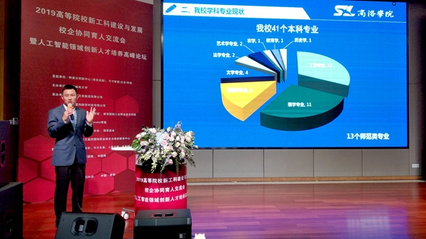应会议邀请,刘勇在大会上以《新工科背景下协同育人模式的探索与实践》为题作了交流发言。发言紧密围绕“地方高校要对区域经济发展和产业转型升级发挥支撑作用”核心,从学科专业现状、服务地方发展、对“新工科”的认识、构建新工科专业新结构、协同育人模式的探索与实践四个方面,介绍了英国365上市公司近年来在“一流学院”“一流专业”建设、新工科项目建设、专业结构调整以及创新创业教育等人才培养方面的做法,交流了自己对于新工科背景下高等教育发展趋势和方向的宏观思考,探讨了建设过程中遇到的困惑和问题,获得了与会高校代表的普遍共鸣。
