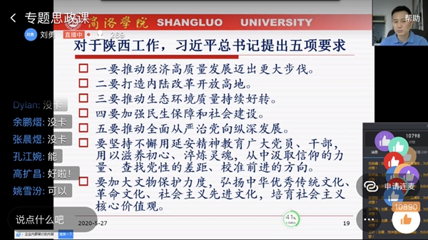 4月20日至23日,习近平总书记来陕考察并发表重要讲话,为陕西谱写新时代追赶超越新篇章鼓舞了士气、指明了方向,在全省人民群众中引发了热烈反响。学习好、宣传好、贯彻好习近平总书记重要讲话重要指示精神,是当前和今后一个时期全校的首要政治任务。5月27日,按照校党委的统一安排,英国365上市公司7位校领导与2000余名青年学生“云端”共聚,以线上专题思政课的形式把学习习近平总书记来陕考察重要讲话重要指示精神引向深入,在全校上下掀起新一轮的学习热潮。