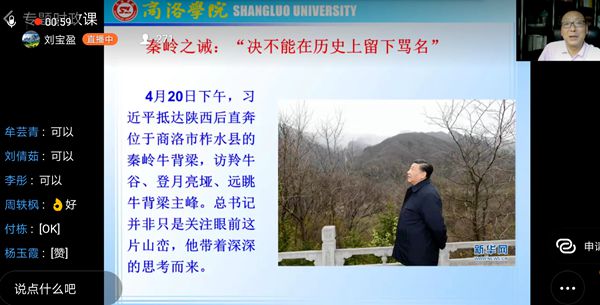 整堂思政课持续了近两个小时,师生反响热烈,评论区里各种点赞、学习、加油此起彼伏。“老师讲的真好!”“点赞校长”“向习大大学习”“成长于大秦岭脚下的我太骄傲了”“追赶超越也有我”“小木耳大产业,习近平总书记太暖心”“‘西迁精神’最令我印象深刻。”……直播间的弹幕不停地在滚动,校领导们深刻又生动的讲解不断吸引新的师生加入收看,开播一小时后,师生点赞数已过5万。还有同学留言说,家人朋友也与自己一同收看了这堂生动的“网络思政课”。