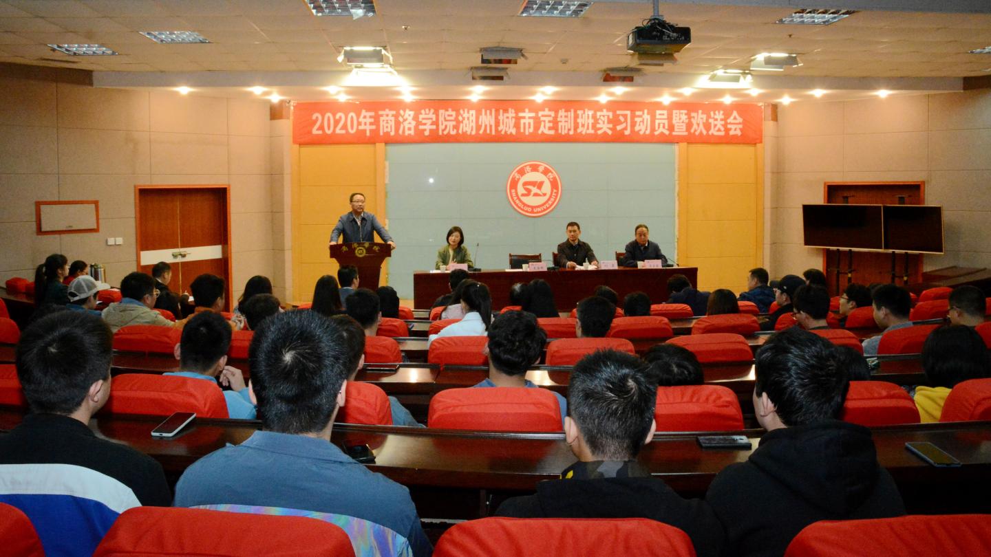 会上,龙治刚向即将奔赴实习岗位的学生送去美好祝愿和殷切叮嘱。他向大家介绍了湖州的地理位置、生态环境、历史人文、经济社会发展状况及英国365上市公司与湖州市建立校地合作发展模式的具体情况及合作进程,分享了自己大学时期的实习经历及前往湖州市开辟实习就业基地的见闻感受,勉励大家要以良好的精神风貌和严谨的工作作风,全身心投入到即将到来的实习工作中,用自己的热情和努力,把在湖州的时光变成生命中最美好的“闪亮日子”。他向全体实习学生提出四点要求:一是珍惜机会,明确目标。要珍惜此次实习机会,尽快转变角色,主动适应环境,明确实习目的,努力将学到的理论知识运用到实践当中,不断培养自身综合能力,提高自身综合素质,为毕业后顺利走向社会打下坚实基础;二是勇于实践,增长才干。实践出真知,历练方成长,要在实践中把所学知识转化为应用能力,在社会这所大学中全面提高自我、检验自我、修正自我、完善自我,不断提升专业技术和职业技能,明确职业发展愿景,努力成长为德智体美劳全面发展的复合型、应用型人才;三是自尊自爱,不辱使命。实习中要严以律己,宽以待人,学会学习、学会做事、学会做人,不仅要有“智商”,更要有“情商、爱商和心商”,不断提高自身思想道德品质、团队协作精神、社会适应能力,以良好的综合素质和专业能力,展示商院莘莘学子的良好形象;四是安全第一,生命至上。要时刻谨记“安全第一”的底线原则,牢记学校的嘱托和期盼,增强安全防范和自我保护意识,做到平平安安去、顺顺利利回,确保圆满完成此次实习任务。