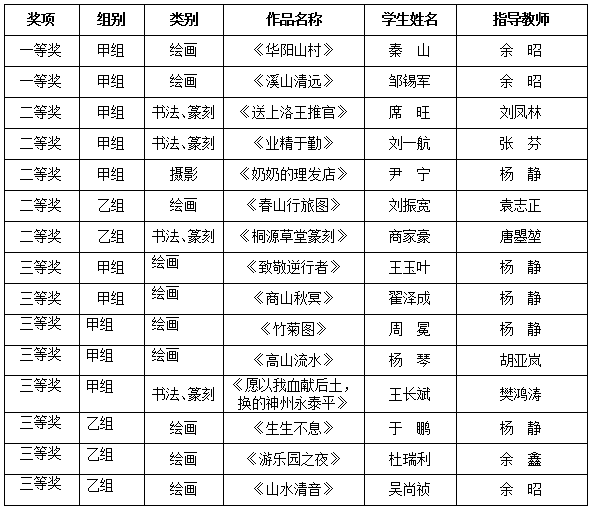 陕西省第六届大学生艺术展演活动艺术作品类获奖名单