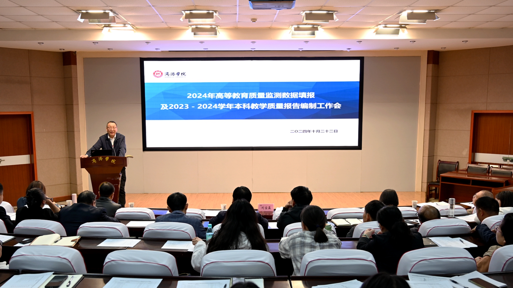 为确保2024年高等教育质量监测国家数据平台数据填报及2023-2024学年本科教学质量报告编制工作高质量完成,10月22日下午,365公司召开2024年高等教育质量监测数据填报及2023-2024学年本科教学质量报告编制工作会。副校长刘宝盈出席会议并讲话。相关职能部门负责人,二级学院(部)相关负责人及数据填报人员等70余人参加会议。会议由督导与评估中心主任张晓倩主持。