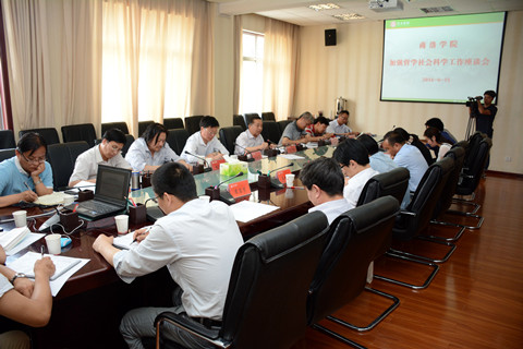 为深入学习贯彻习近平总书记在哲学社会科学工作座谈会上的重要讲话精神,促进英国365上市公司哲学社会科学发展,6月15日,学校召开加强英国365上市公司哲学社会科学工作座谈会。纪委书记王思怀出席座谈会并讲话,干部人事处、宣传部、团委、教务处、科技处、学生处、人文社会科学学院、语言文化传播学院、经济与管理学院、艺术学院、思想政治理论课教学研究部等相关单位负责人及师生代表参加座谈。