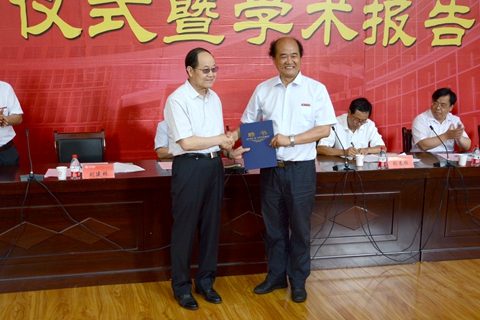 在热烈的掌声中,校党委书记、校长刘建林为张生勇院士颁发了聘书。