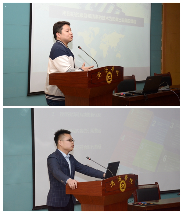 超星集团陕西课程项目总监庞健与超星集团泛雅平台产品经理刘杰,先后以《微课课程建设》《微课时代的新一代网络教学平台--泛雅》为主题,结合微课制作的优秀案例,分别从微课教学团队建设、编辑团队建设、微课制作前期中期的准备工作、微课教学理念、泛雅平台的特征等方面进行了全面的讲解,并通过“超星学习通”与参会教师互动。