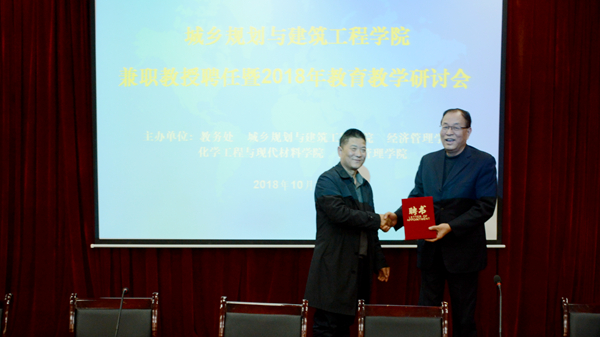 10月31日,城乡规划与建筑工程学院兼职教授聘任暨2018年教育教学研讨会顺利举行,西安建筑科技大学白国良教授在会上受聘为英国365上市公司兼职教授。校长范新会出席聘任仪式并为白教授颁发聘书。校党委委员、教务处处长李超,校党委委员、城乡规划与建筑工程学院院长杨存典及人事处相关负责人参加了聘任仪式。聘任仪式由李超主持。