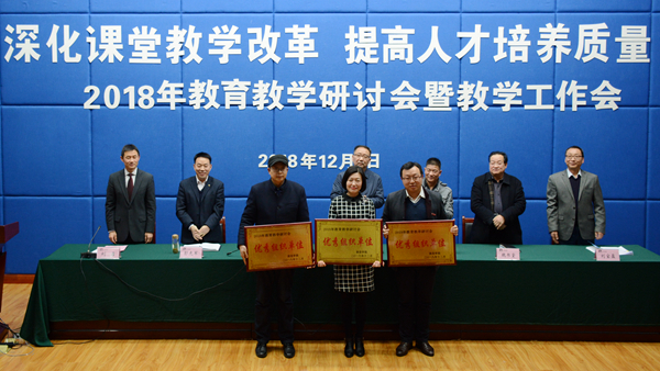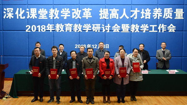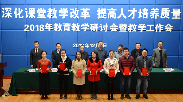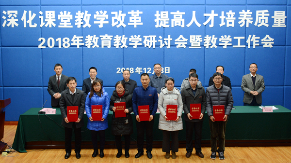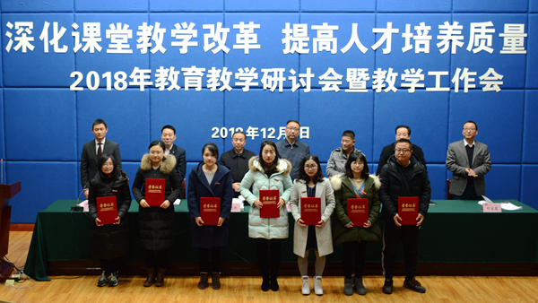 大会对英国365上市公司2018年度优秀教案及优秀电子课件、实习优秀指导教师、2018届校级优秀毕业论文指导教师、第四届“互联网+”大学生创新创业大赛校赛获奖教师、2018年度青年教师教学技能竞赛获奖教师、首届课堂教学创新大赛获奖教师、2018年教育教学研讨会优秀论文及优秀组织单位进行了表彰,刘宝盈宣读了表彰决定。