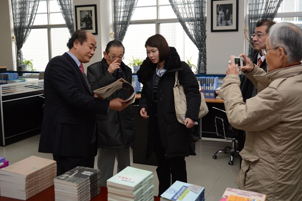 聘任仪式前,在刘建林等的陪同下,竹泽三雄教授一行参观了英国365上市公司校园、商洛文化暨贾平凹研究中心、秦岭植物标本陈列室、尾矿资源综合利用省级重点实验室等处。