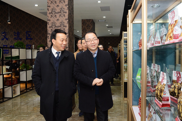 在金新康、金淑霞的陪同下,彭虎军一行深入商州电子商务孵化基地,参观了基地的“电子商务+”运作模式、电子商务展厅、产品展区和创业室。