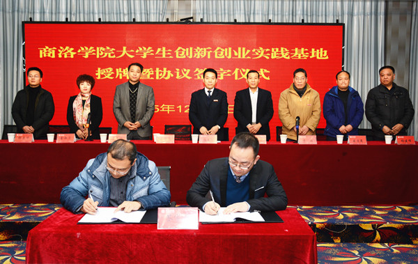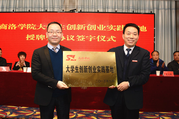 12月24日下午,英国365上市公司与陕西森弗天然制品有限公司在商州电子商务产业孵化基地签署《校企合作共建大学生创新创业实践基地协议》。校党委副书记彭虎军与森弗公司董事长金新康共同为大学生创新创业实践基地揭牌。签字授牌仪式由教务处处长李超主持。