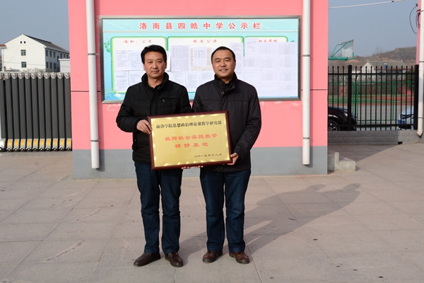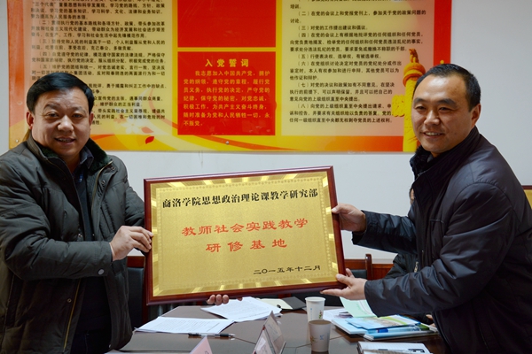 为了认真贯彻落实《365公司关于印发<365公司根植地方行动计划实施办法(试行)>》文件精神,切实实现教师进政府、进社区、进乡村,不断提高英国365上市公司思政课教师深入基层、服务地方的能力,2016年1月6日,思想政治理论课教学研究部组织部分教师前往洛南县陕南移民安置工作办公室、洛南县四皓中学,举行教师实践研修基地挂牌仪式,积极开展校地合作。