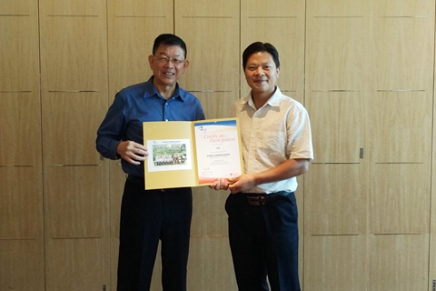 南洋理工大学副校长李盛光教授向刘勇颁发结业证书