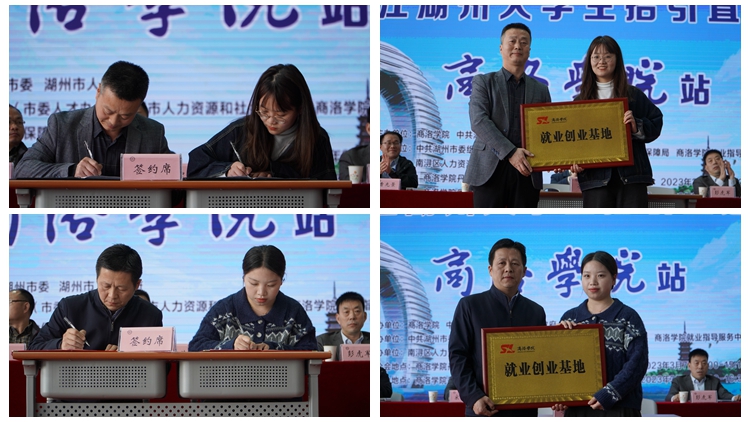 会上,电信学院、化材学院、生物学院、经管学院分别与浙江华远微电科技有限公司、久立集团股份有限公司、长兴太湖龙之梦虹峰酒店投资管理有限公司及湖州嘉亨实业有限公司签订了大学生就业创业基地建设协议。